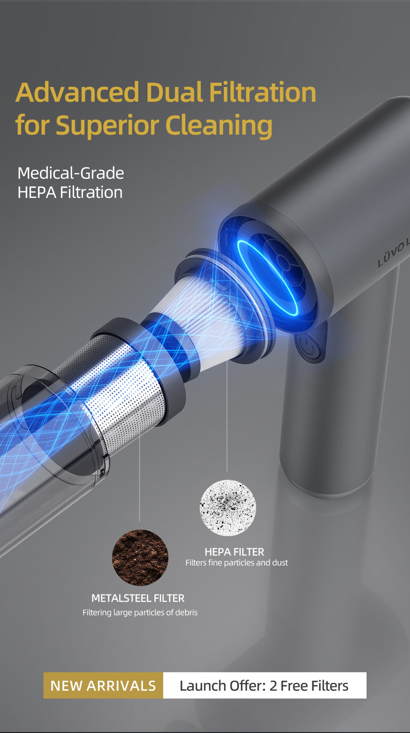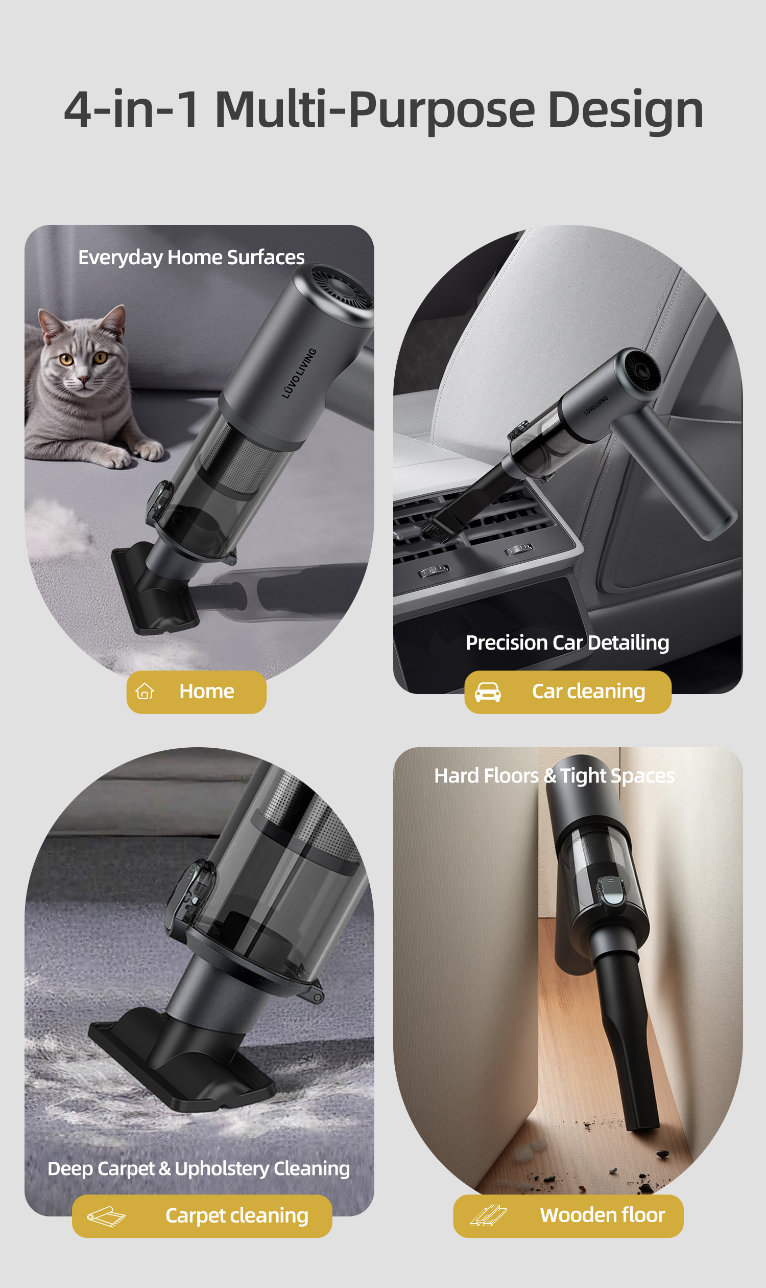 The Lüvo Living M8 Pro 2nd Gen delivers serious suction in a compact body. One-pass pickup pulls crumbs, sand, and pet hair from tight seams while a washable HEPA H13 filter keeps the air cleaner. Ultra-light, cordless, and dock-ready: made for quick wins at home and in the car.